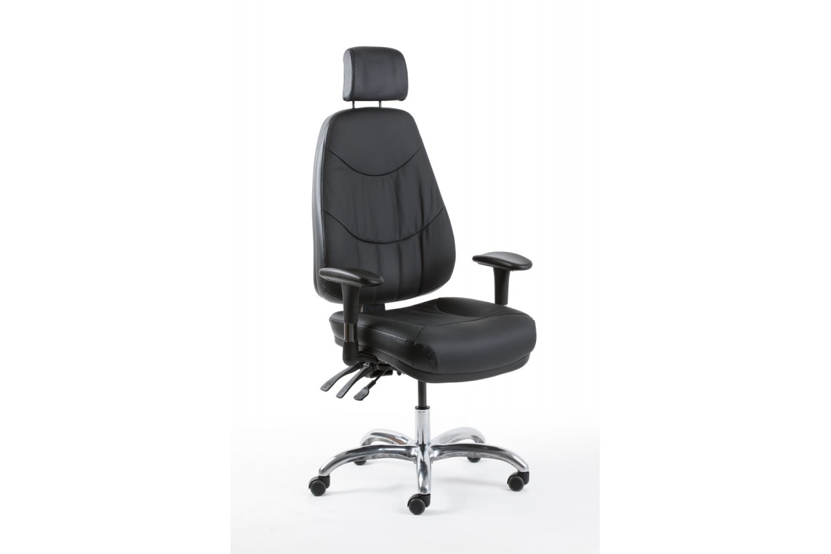 Kestävä työtuoli aidolla nahalla verhoiltuna.